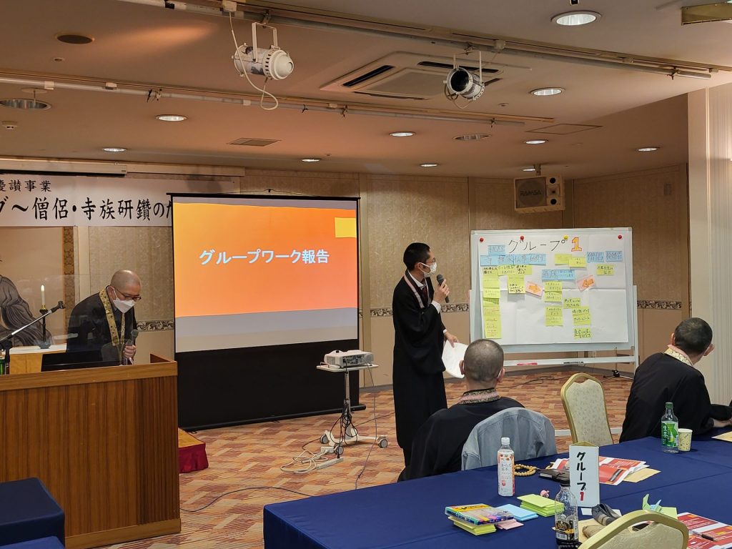 午後からは「てら活って何?」「寺院の未来について語り合おう」という内容にて、東海林良昌先生においで頂き、寺院が抱えている問題、その原因、寺で出来ることをグループで話し合い、発表致しました。