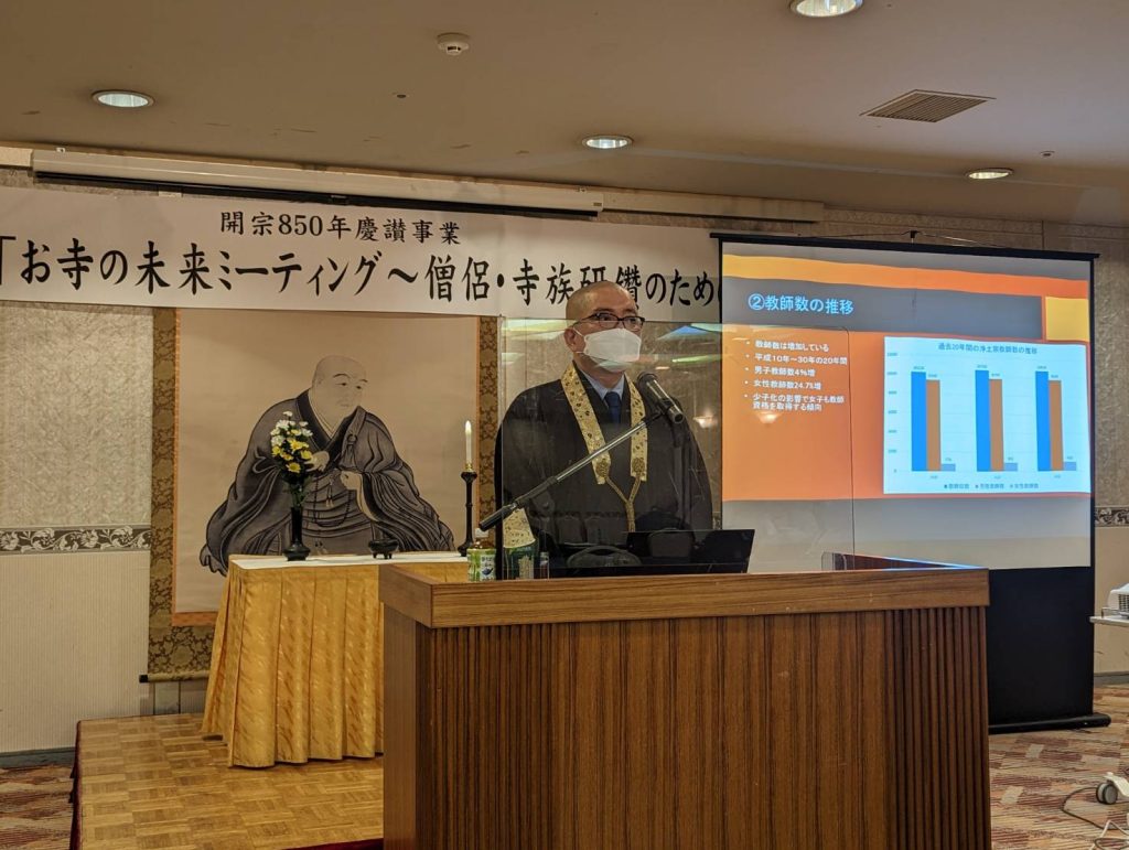 11月10日。宮崎市のホテルメリージュにて「お寺の未来ミーティング」か開催されました。午前の部は「浄土宗開宗の御心」~お念佛からはじまる幸せ~という内容にて、浄土宗総合研究所から齋藤舜健先生においで頂きました。