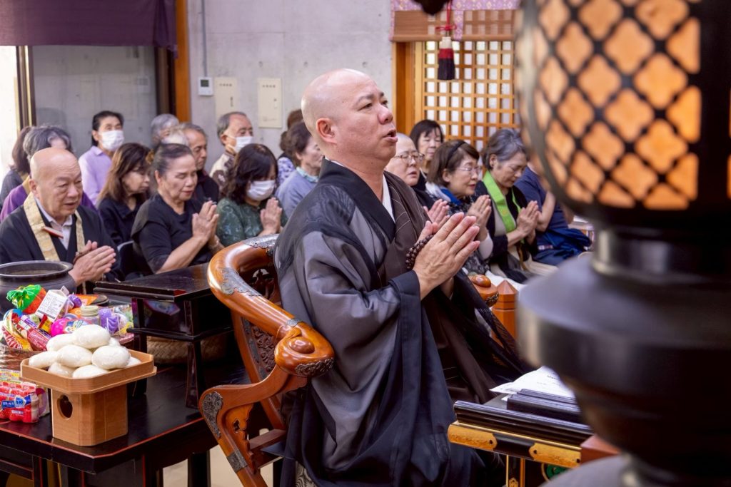 元来、沖縄は檀家という制度に馴染みのない土地といわれますが、当日は本堂の外にまで椅子を並べても足りないほど多くの方にお参りいただきました。法要後は知恩院布教師会前会長 勝部正雄上人によるご法話をいただき、この仏縁、法然上人のお念仏のみ教えとのご縁をより深く、強く結んでいただきました。