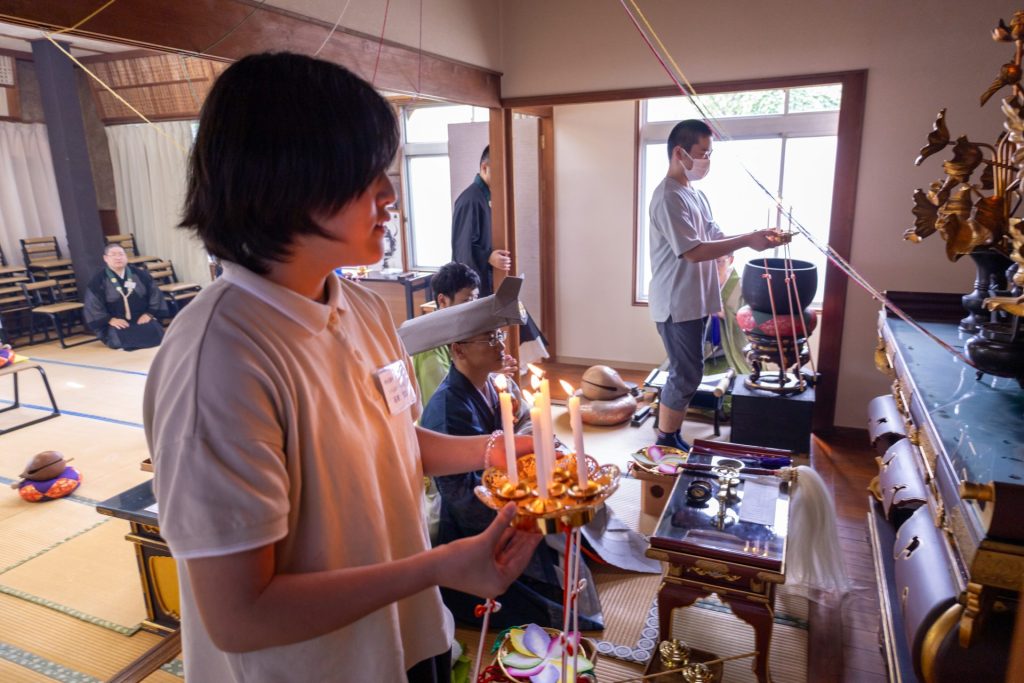特に最後の帰敬式・慈悲つむぎ法要では、大山寺副住職 福冨裕一上人に御導師をお勤めいただき、参加者へ仏の教えとお念仏についての説示を頂きながら、私は写真撮影やサポート役として動きつつ各参加者の様子を見ておりましたが、目に涙を浮かべながら最後まで真剣にお話を聞いてくださっている参加者の姿に、強く心を打たれました。